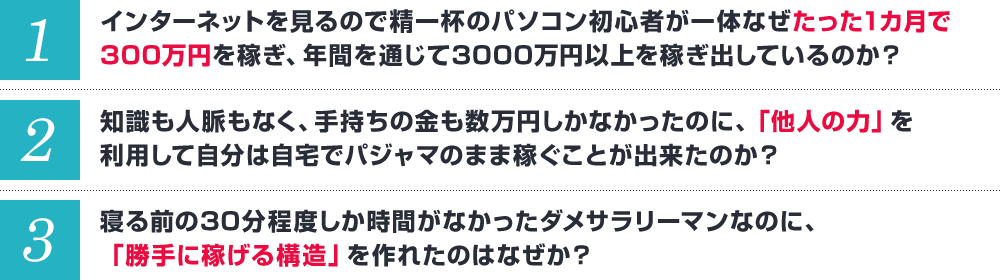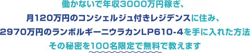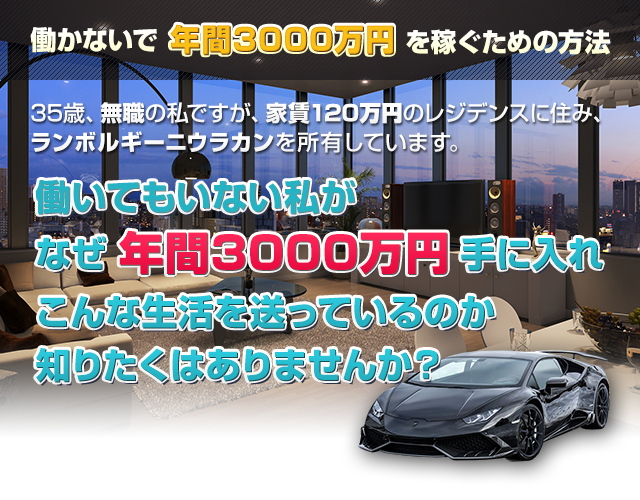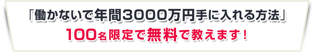 であれば、私が働かないで年間3000万円ものお金を稼ぎだしている方法を、